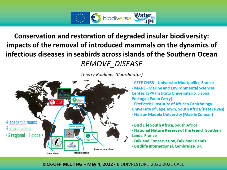 October/November 2024: High Pathogenicity Avian Influenza (HPAI) emerged on Southern Indian Ocean archipelagos, where it was responsible for die-offs of southern elephant seals and seabirds (Clessin et al. 2025 Nature Communications). Phylogenetic analyses showed that the virus arrived from South Georgia. The three field areas of REMOVE_DISEASE project, the Falkland Islands, Marion island, and the French Southern Lands, have been the subject of HPAI outbreaks, stressing the importance of the work conducted on infectious disease transmission at different spatiale scales and among seabirds and mammals.